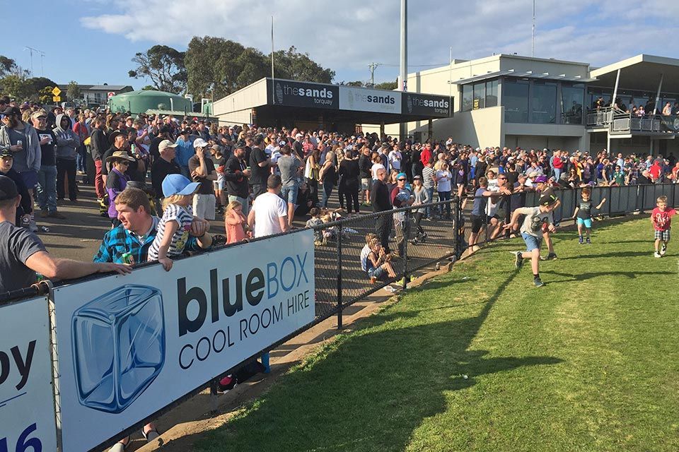 This year (2015) the weather was exceptional and so was the crowd turn out. It was estimated 10,000 plus spectators turned up to watch the Torquay Tigers take on the Geelong Amateurs.
